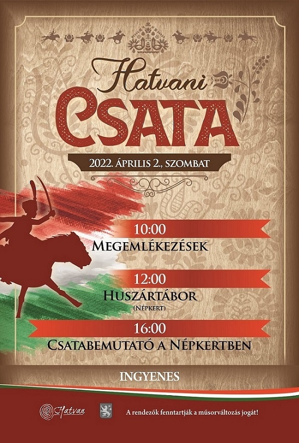 A Hatvani Csata a hétvégére várható kedvezőtlen időjárásra való tekintettel elmarad. Az időjárás-előrejelzés több napos esőt jósol és hideget. A program tervezett területén (Népkert) így előreláthatólag nem állnak rendelkezésre majd elégséges feltételek, hogy a lovas csatabemutatót a megszokott minőségben, látványban meg tudják rendezni.