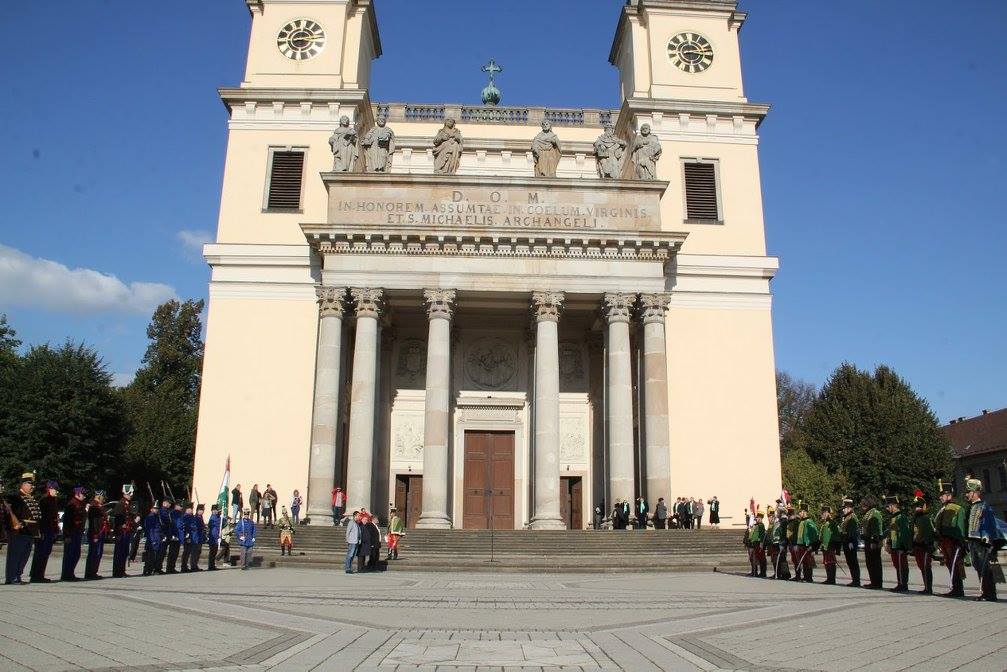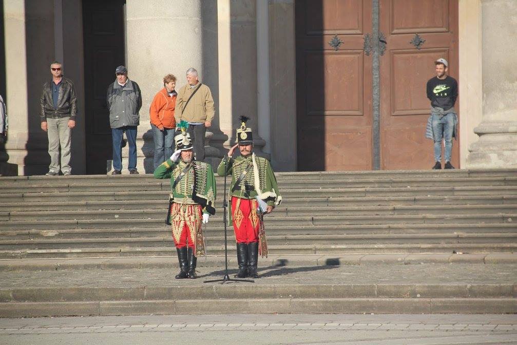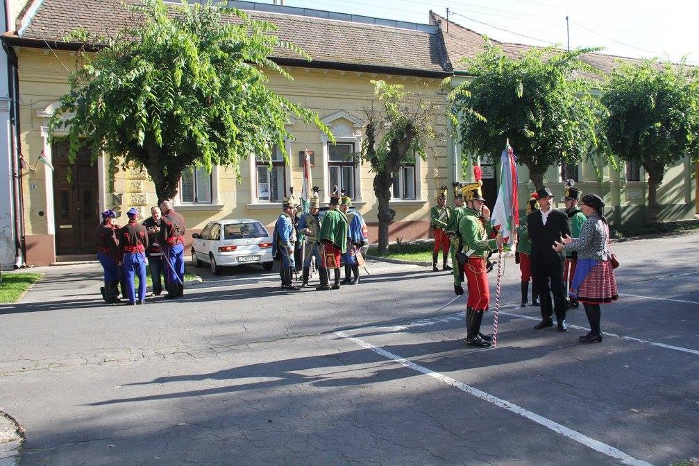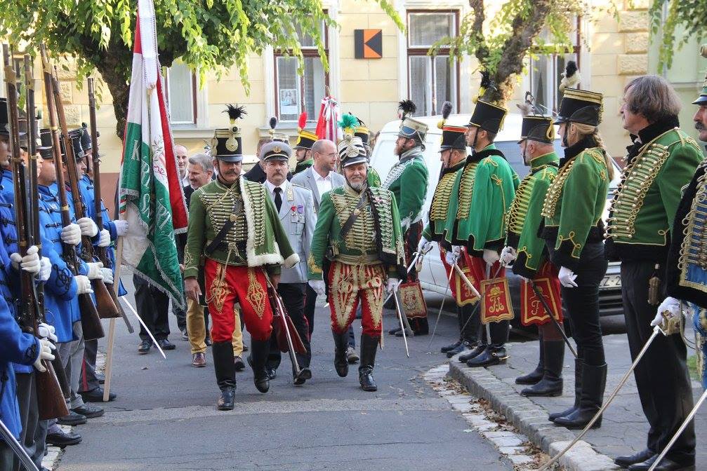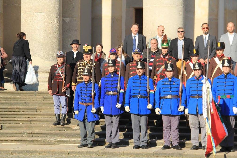 Fördős Attila polgármester úr üdvözlő szavai után a Magyar Huszár és Katonai Hagyományőrző Szövetség megbízásából ezüst és bronz érdemkereszteket adtak át a magyar katonai hagyományok ápolásának kimagasló érdemeiért Bakó Zsolt hő. főhadnagy úrnak, Erb Lajos hő. hadnagy úrnak, Kerekes Gábor hő. tüzérhadnagynak és Farkas Tibor hő. tüzér hadnagynak. Emlékező műsor után a huszárok, nemzetőrök és tüzérek a dómba vonultak, ahol Dr. Beer Miklós püspök úr megáldotta a csapatzászlóinkat.