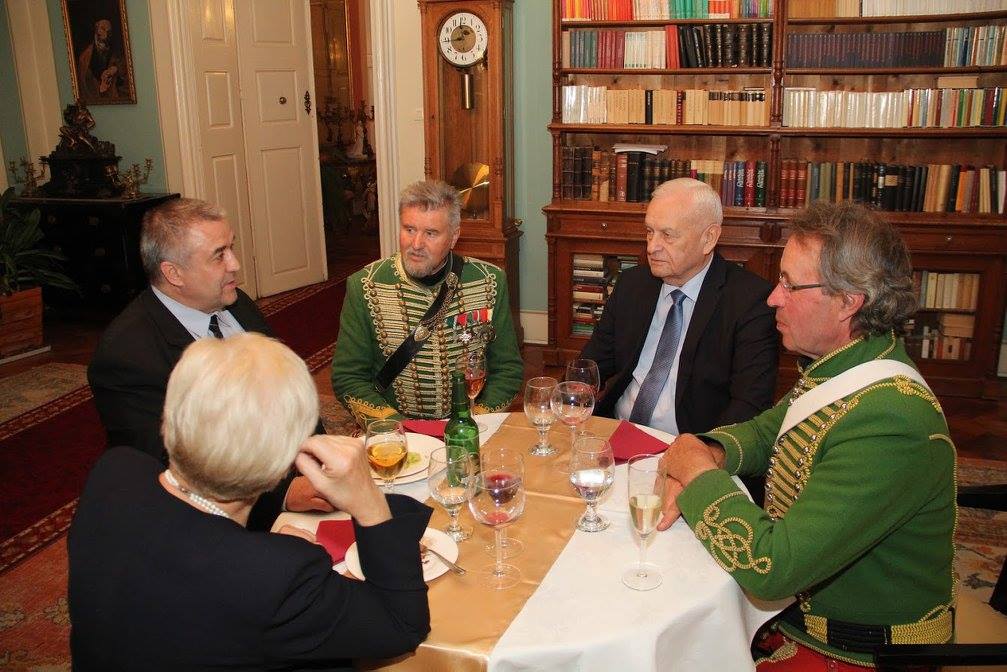 A székesegyházból történő kijövetel után ágyúszó köszöntötte a születésnapját ünneplő bandériumot, majd a Püspöki palotában meneteltünk, ahol kiállítást tekinthettünk meg az elmúlt időszak legszebb pillanataiból, melyet Csereklye Sándor hő. alezredes, a bandérium tiszteletbeli elnöke nyitott meg, újra elmesélve az indulást, emlékezve a „hőskorra”. Az ünneplést állófogadáson folytattuk. (Fotók: Vörös István)