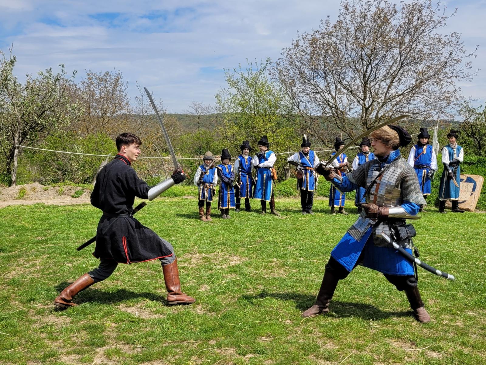 A verseny után, idén négy növendékünket avattuk apróddá, Szent György napja alkalmából. Ezek az új vitézeink teljesítették az elmúlt hadiév során a szükséges 30 részvételt az egyesület rendezvényein, edzésein. Ezután elfogyott egy teli üst gulyás, és vidám majálissal fejeztük be a napot, amit végig, a délután folyamán, az apródok fából készült szablyáinak csattogása kísért.