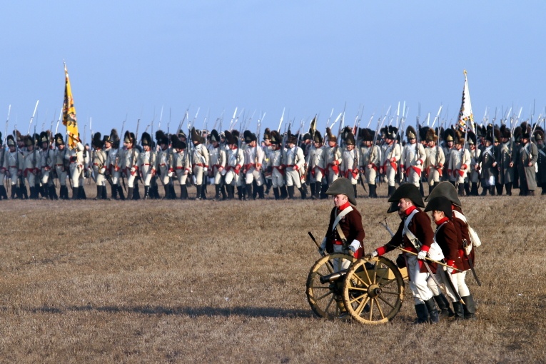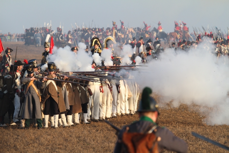 December 5-én, szombaton, először a Pratzen (Prace)–hegyre mentünk, ahol a Béke emlékműve található, mely több nemzet hősi halottainak állít emléket. A csatatér központi részén elhelyezkedő magaslat a francia és orosz gárda összecsapásának helyszíne volt, mely a franciák győzelmével végződött. A monumentális emlékmű alatt több ezer orosz és francia katona van eltemetve. A magaslaton múzeum is található, mely digitális eszközökkel igyekszik bemutatni a csata eseményeit. Ezután Tvarozna faluba érkeztünk, ahol már gyülekeztek a hagyományőrző csapatok, Európa több országából. A falu központjában eligazítás zajlott és korabeli sátrak lepték el a parkokat. Az orosz hagyományőrzők között baskírok is voltak, akikkel közös fotót készítettek székely és bihari huszárok. A falu mellett található Santon-magaslat alatti mezőn, melyen szintén véres összecsapás zajlott a csata idején, került sor a hadijátékra (reenactment), melyet Jiri Kovarik cseh történész moderált. A hagyományőrző csapatok korhű egyenruhákban és felszereléssel érkeztek a csatamezőre, a hivatalos források szerint, közel 2000-en. A székelyeket 50 budapesti hagyományőrző képviselte. Az osztrák-orosz és francia csapatok soraiban: franciák, oroszok (kozákok), csehek, szlovákok, magyarok, osztrákok, lengyelek és németek voltak. Nagyszámú cseh hagyományőrző korabeli osztrák vagy francia egyenruhát viselt.