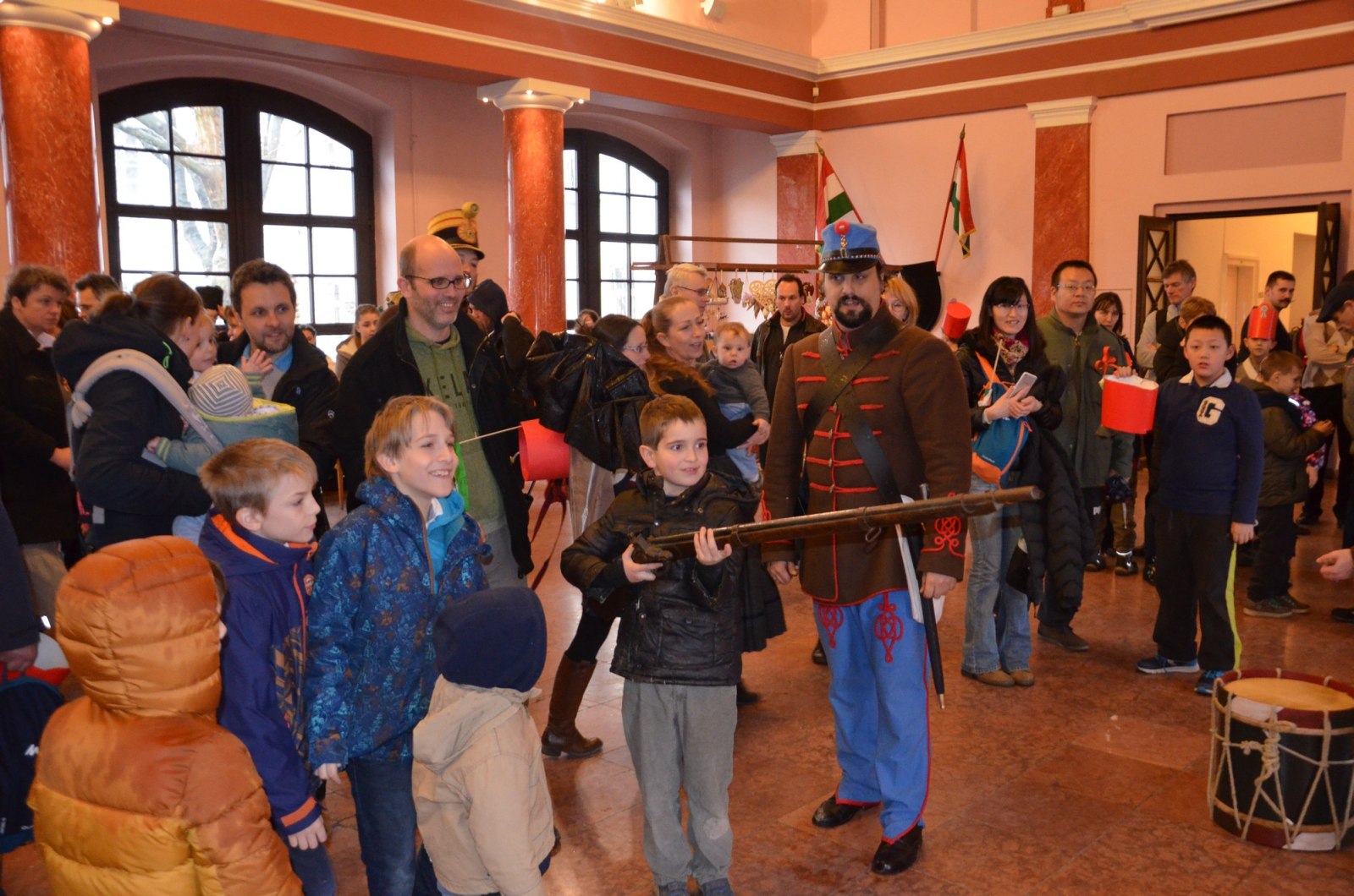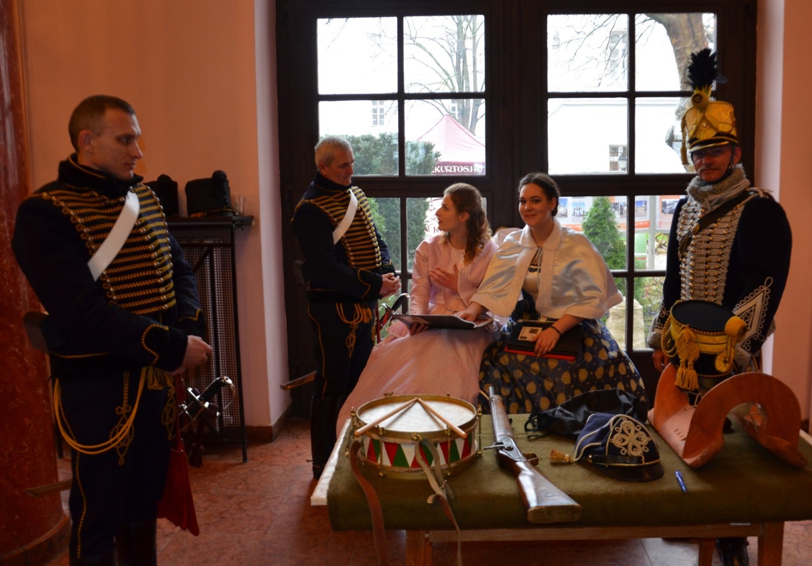 A múzeum főkapujánál a 32. Esterházy Gyalogezred Hagyományőrző Egyesület sorgyalogosi egyenruhájában érkező katonái adták a díszőrséget.
