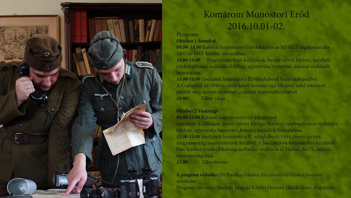 Október 1-én és 2-án II. Világháborús Hadijáték fesztivál kerül megrendezésre a Monostori Erődben. A rendkívül gazdag program a mellékelt plakáton ill. az erőd weboldalán olvasható.