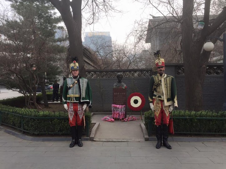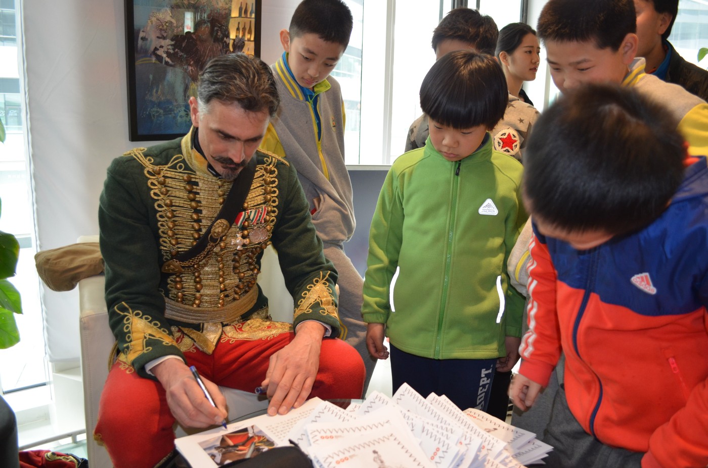 A meghívás amint a korábbi két esztendőben is, most is a Pekingi Magyar Intézet részéről érkezett. Ennek a meghívásnak eleget téve jártunk tehát Pekingben, ahol tisztelegtünk Nemzeti Ünnepünk alkalmával Petőfi Sándor pekingi szobránál, majd gyermekeknek és érdeklődő felnőtteknek tartottunk előadásokat a magyar huszárság történetéről és a magyar folklór kapcsolódó tánc és zenei kincseinek egyes jellemző darabjait és azok történeti érdekességeit mutattuk be.