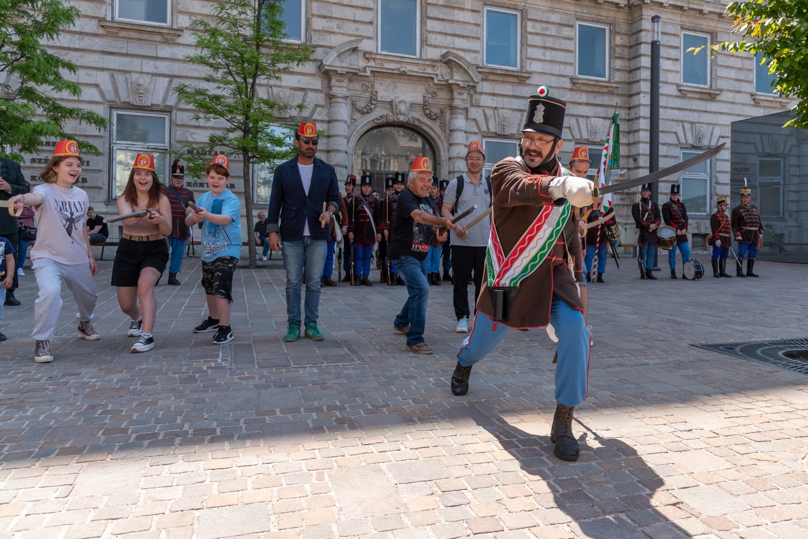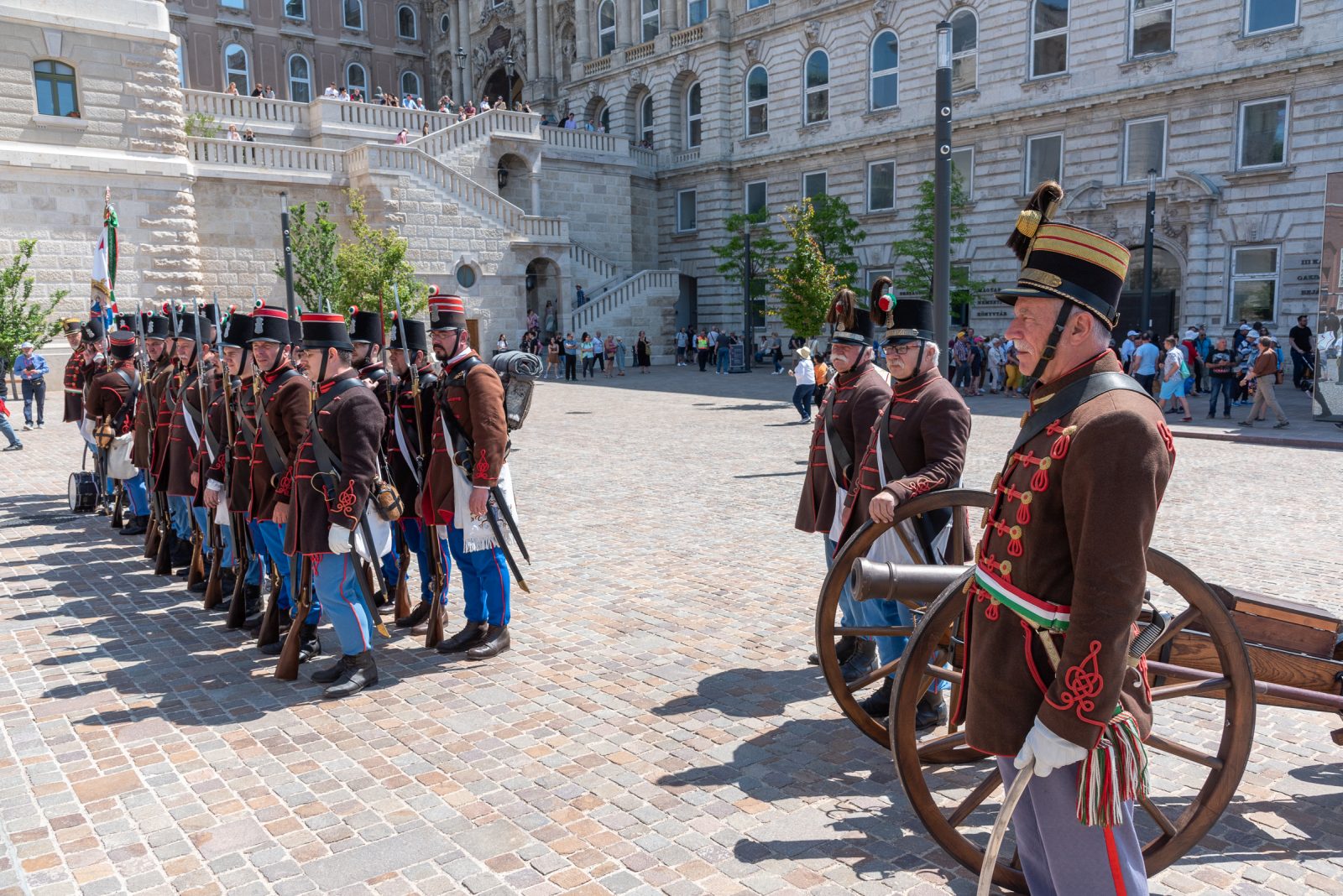 A Budavári Palota Csikós udvarában 10 órától már bemutatókat tartottak a 48-as honvéd gyalogságot megjelenítő hagyományőrzők. Az élő történelemórán a honvéd hagyományőrző egység szemléltette a honvédsereg fegyverzetét, alaki és harcászati mozgásokat mutatott be. A Királyi Lovarda bejáratánál egész nap tüzérségi pont üzemelt, Gábor Áron ágyújának korhű másánál a tüzérek mutatták be a töltés, irányzás és lövés technikáját.