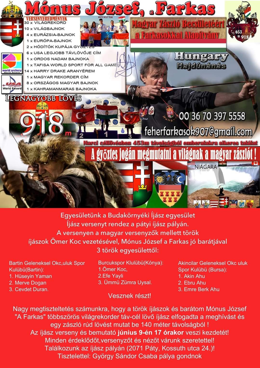Mónus József világbajnok távlövő íjász és több török tradicionális íjászcsapat volt június 9-én a Budakörnyéki Íjász Egyesület vendége a pátyi íjászpályán.