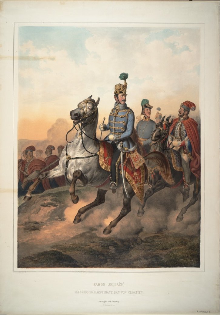 A bán és kísérete egészen a horvát tüzérség vonaláig hatolt előre, mire a magyar tüzérség tüzet nyitott a feltűnő lovas csoportra. Ágyúgolyó ágyúgolyó után csapódott be a közelükben, mire a bán egy idő után megunta a mulatságot, s jónak találta hátrébb lovagolni. Elől a bán haladt, egyik oldalán Wilhelm Hompesch őrnagy, a másikon Werner Oldershausen főhadnagy, mögötte pedig Hermann Dahlen főhadnagy. Egyszer csak újabb ágyútűzbe kerültek, s egy lövedék ellőtte egy parancsőrtiszt lovának lábát, egy másik pedig Oldershausen jobb tomporába csapódott.
