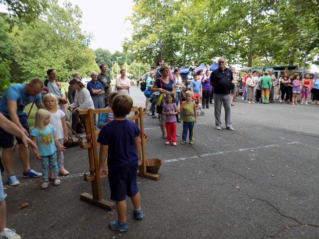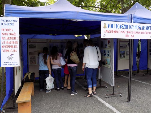 Kora délutántól a várkerti parkolóban már különféle programok várták az az érdeklődőket. A legkisebbeket ötletes játékokkal invitálták, volt többek közt kirakó, malom és fenyőtobozos mérleg is, a gyerekek szívesen kipróbálták mindegyiket. A felnőttek addig a kirakodóvásárban nézelődhettek, illetve megtekinthették a Pápai Huszáregyesület kiállítását. Nagy Zoltán hagyományőrző huszár őrmester állította össze a tárlat egyik részét, mely fotók segítségével három időszakot ölelt fel: a kiegyezés után megalakuló honvéd huszárezredekről, a Nagy Háborúról és a Pápai Huszáregyesületről tudhatott meg többet, aki végignézte a tablókat. A kiállítás másik része László Szabolcs gyűjtőnek volt köszönhető, aki első világháborús fegyvereket, kitüntetéseket válogatott erre az alkalomra.