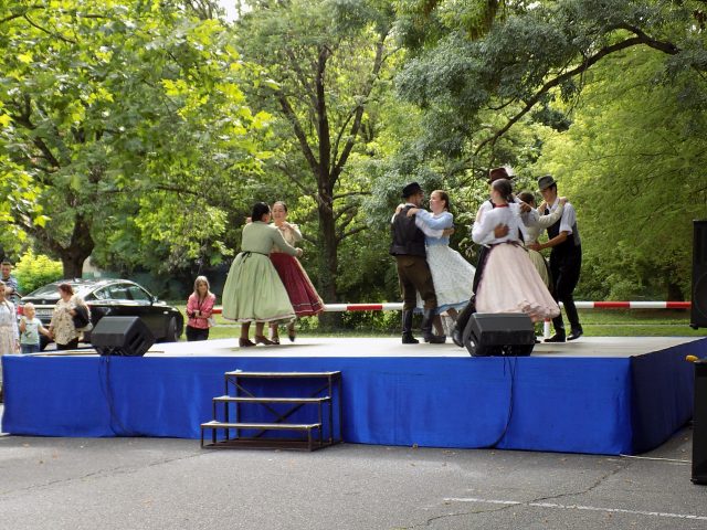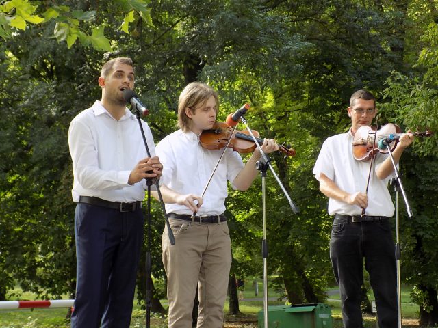 Közben a színpadon a Vadvirág Néptáncegyüttes és annak utánpótláscsoportja, a Nefelejcs adott műsort, őket Kossuth Gergő követte, aki ezúttal első világháborús katonanótákat énekelt. Mint mondta, mindig szívesen jön haza, most az egyesület felkérésére lépett fel. A Tilalmas zenekar kíséretében felcsendült a Beállok rózsám katonának..., a Ha kimegyek a doberdói harctérre.., de a Söprik a pápai utcát is. Kossuth Gergő elmondta, hogy ő nem volt katona, de a pápai hagyományőrző egyesületnél sokat tanult hadviselésről, a fegyverforgatásról, a hősök tiszteletéről, ezt próbálja meg visszaadni a dalokban.