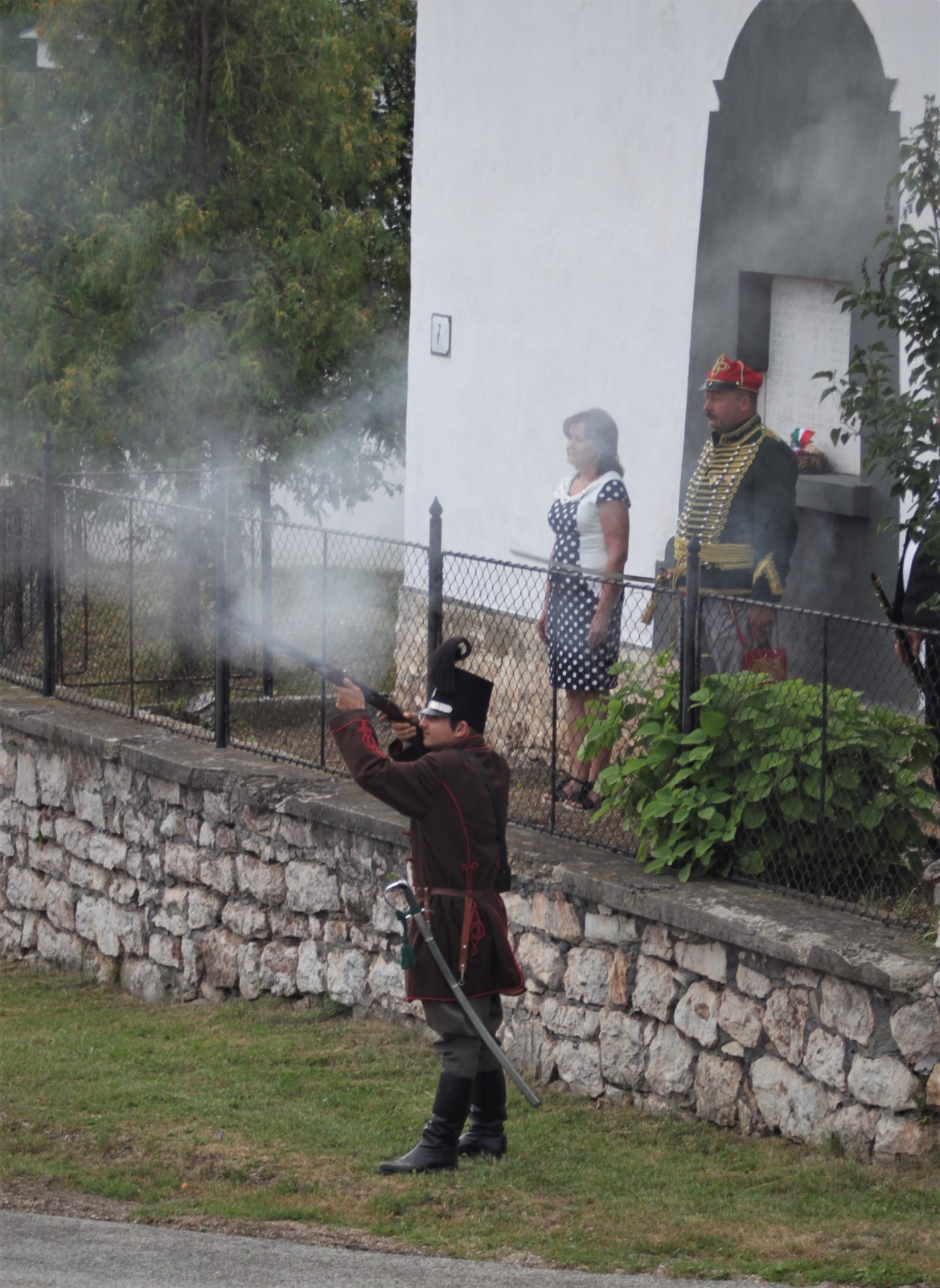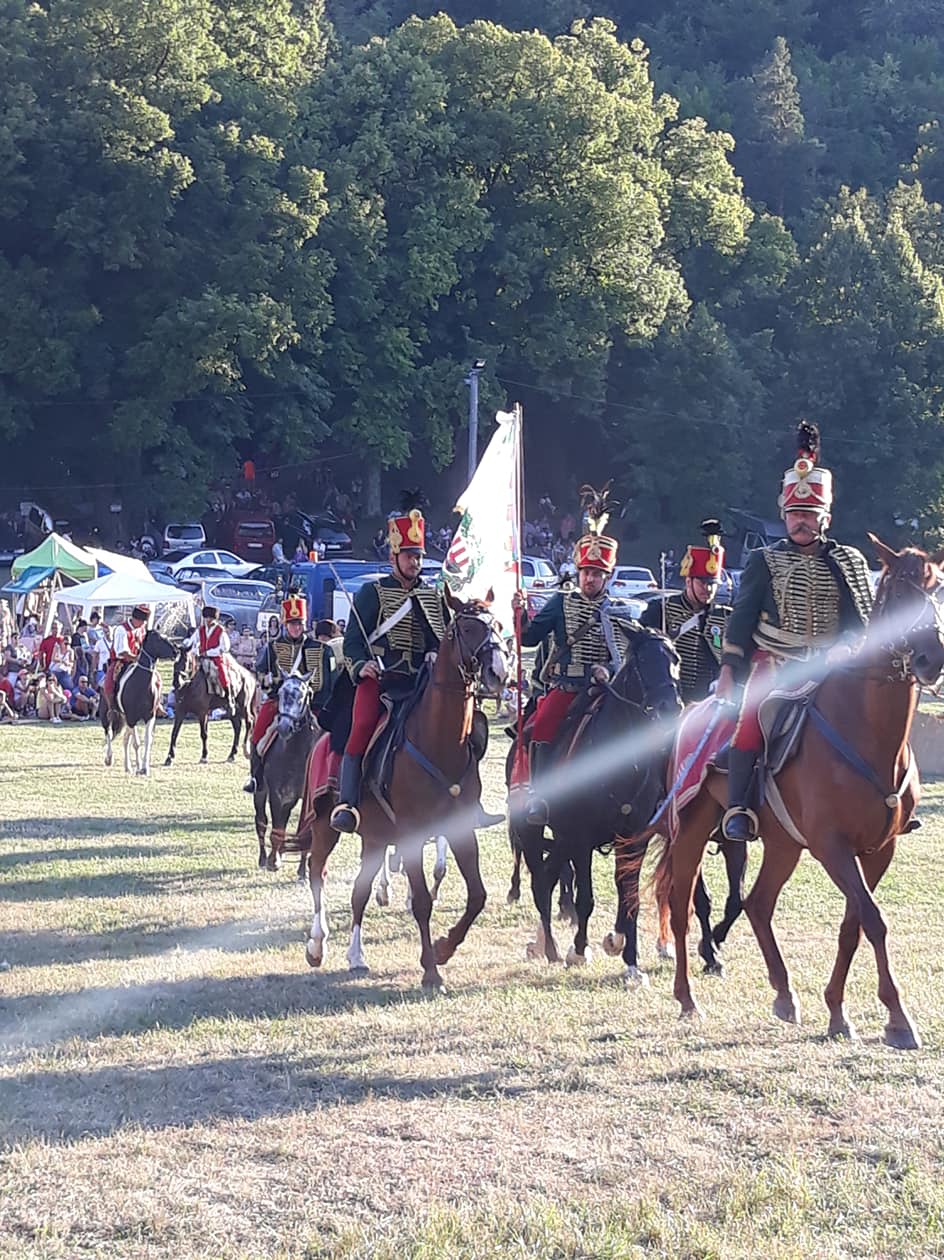 Nem kevesebb sikert aratott a huszárkarusszel 11 egységes Coburg-egyenruhával és 3 dámalovassal szintén az ezred színeiben, illetve a korabeli toborzást előadó néptáncosok verbunkja, valamint a csikósbemutató. Ám mégis őszintén megvallhatjuk, hogy a közönség tetszését leginkább a lótolvajlásért meglakoló betyár felakasztása nyerte el, hiszen még a bitófa is összeszakadt. A hagyományőrzők végül a legkisebbek örömére huszárlovakon lovagoltatták a gyermekeket, arcukon mosollyal, nyomát sem mutatva a tegnapi, az aznapi lovaglás, a korán kelés, a kánikula okozta fáradalmaknak, hiszen mi hagyományőrök tudjuk, a korhű csatákat a közönségnél csak a szereplők élvezik jobban!